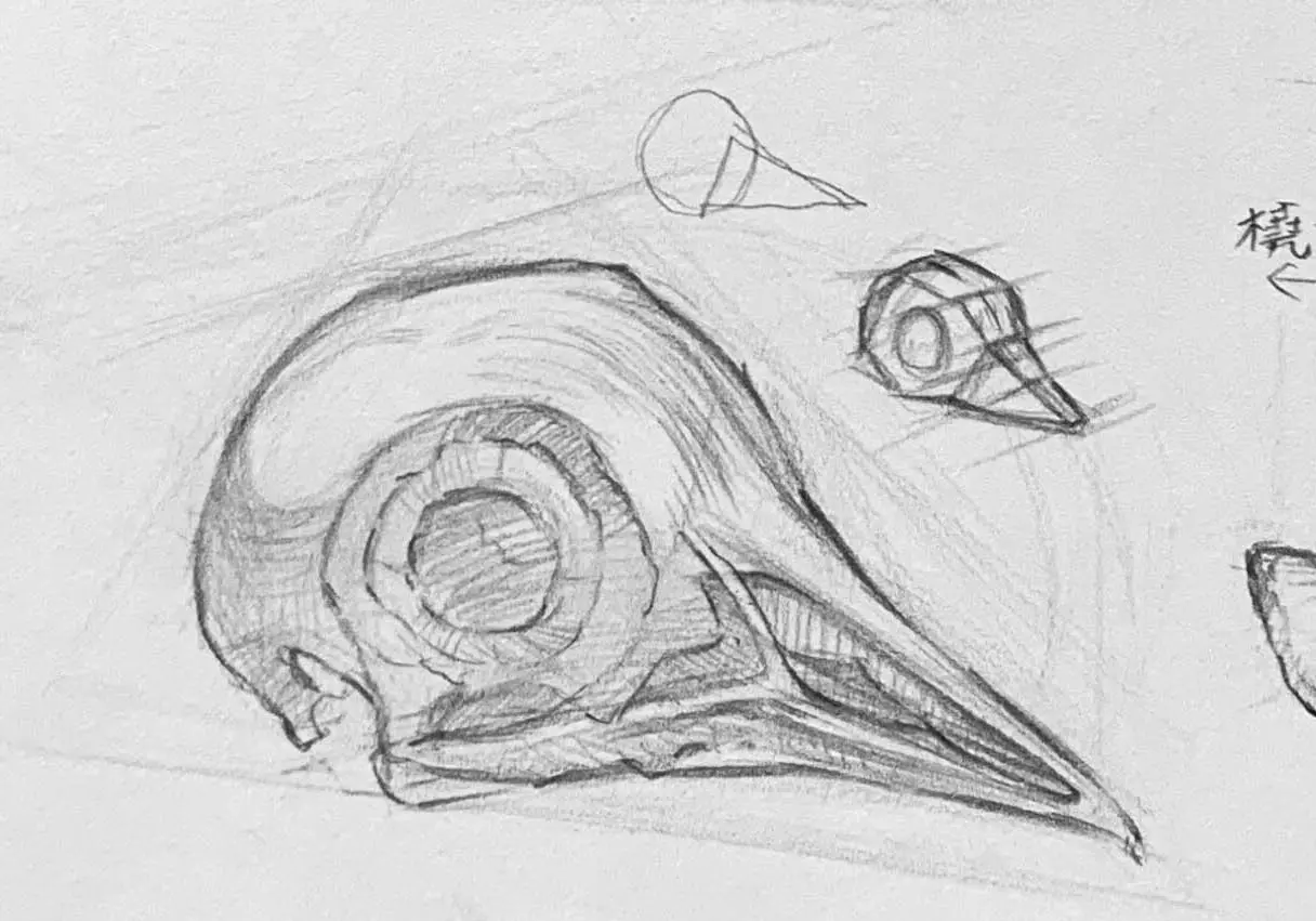 鴿子的頭部較小且圓, 頭部骨架的形狀較圓潤,眼窩和頭顱的結構請參考正下方小圖。