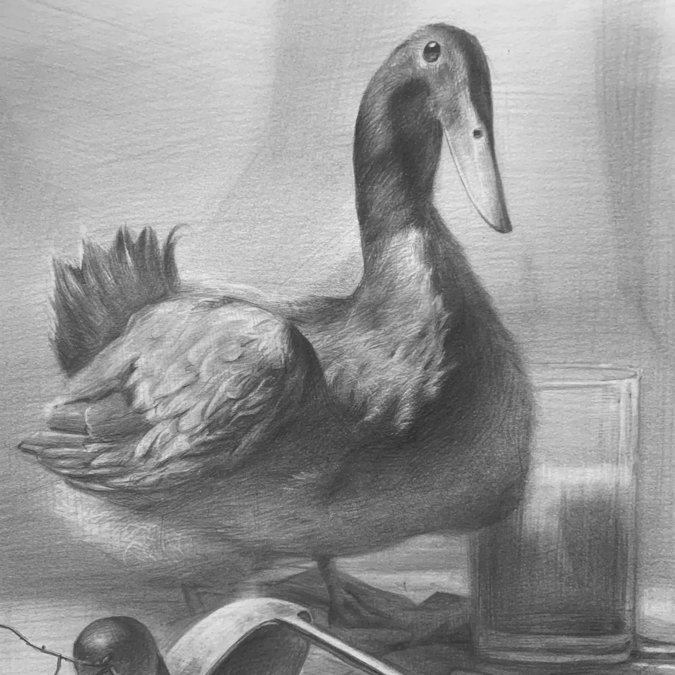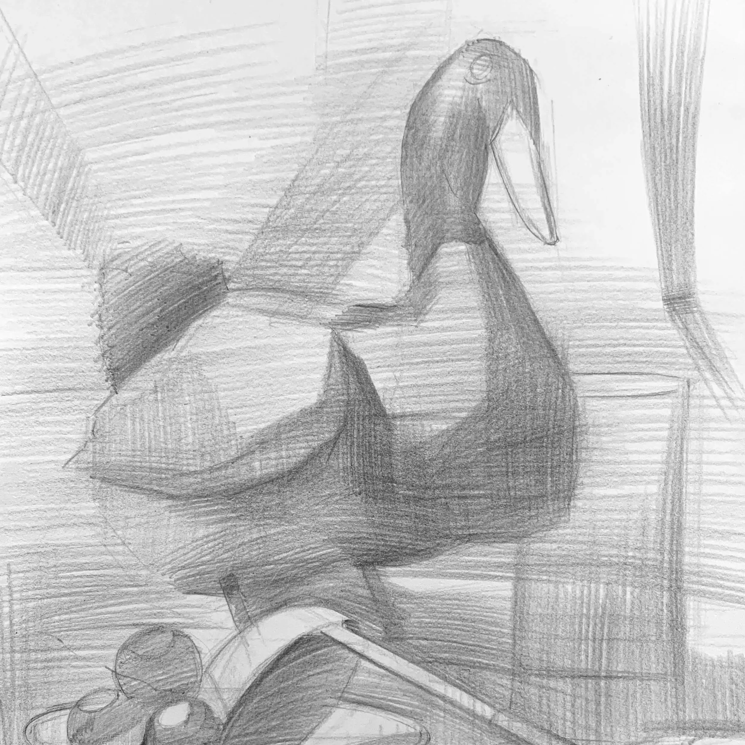 這週鳥類靜物組課堂習作,調整不同物件之間位置及強度。