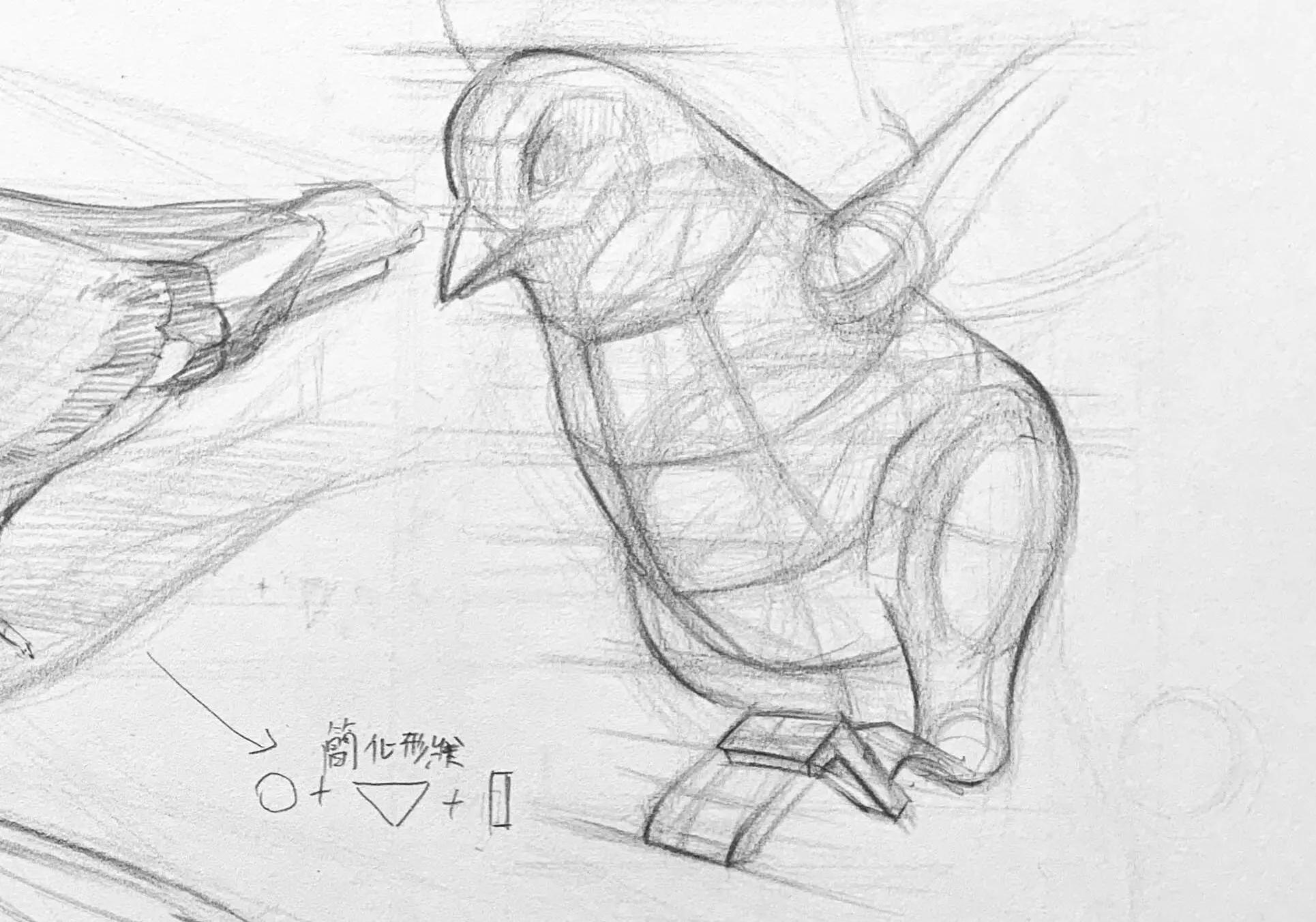注意整體長寬比例,鴿子的身體可用圓形、三角形、矩形來概括表示,
