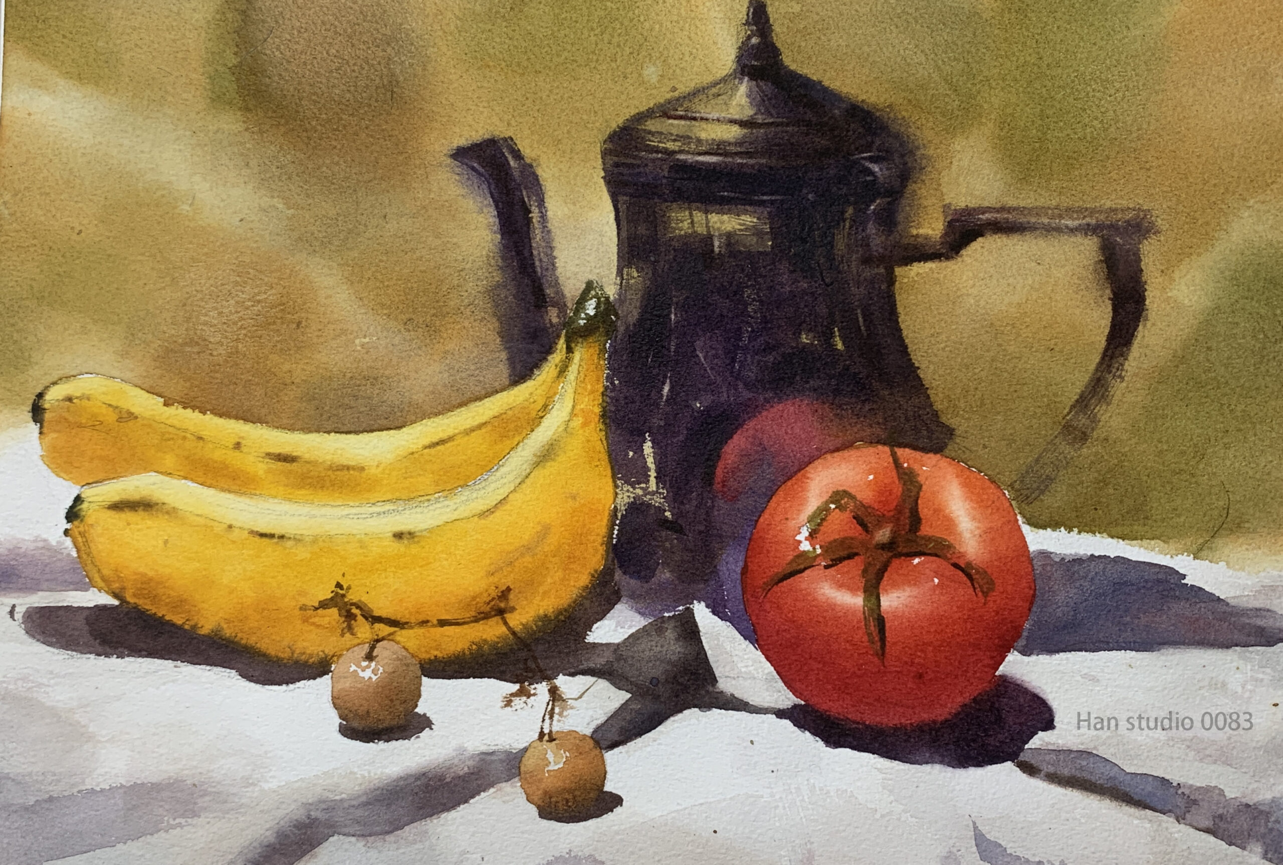 上週香蕉靜物水彩課堂習作,這幾次調整保持明度的前提下加入變化,把顏色變化差異做的細微很有挑戰🙋