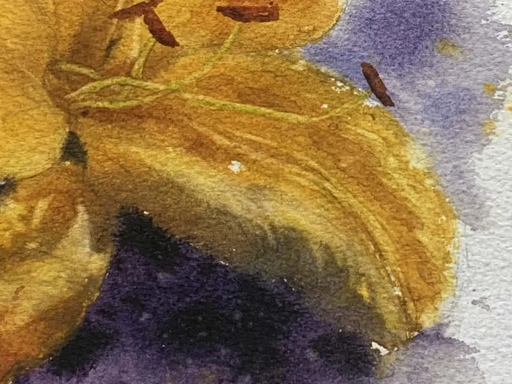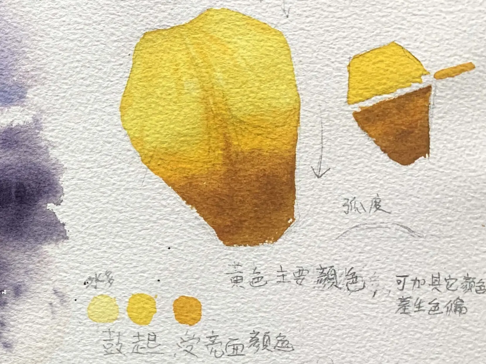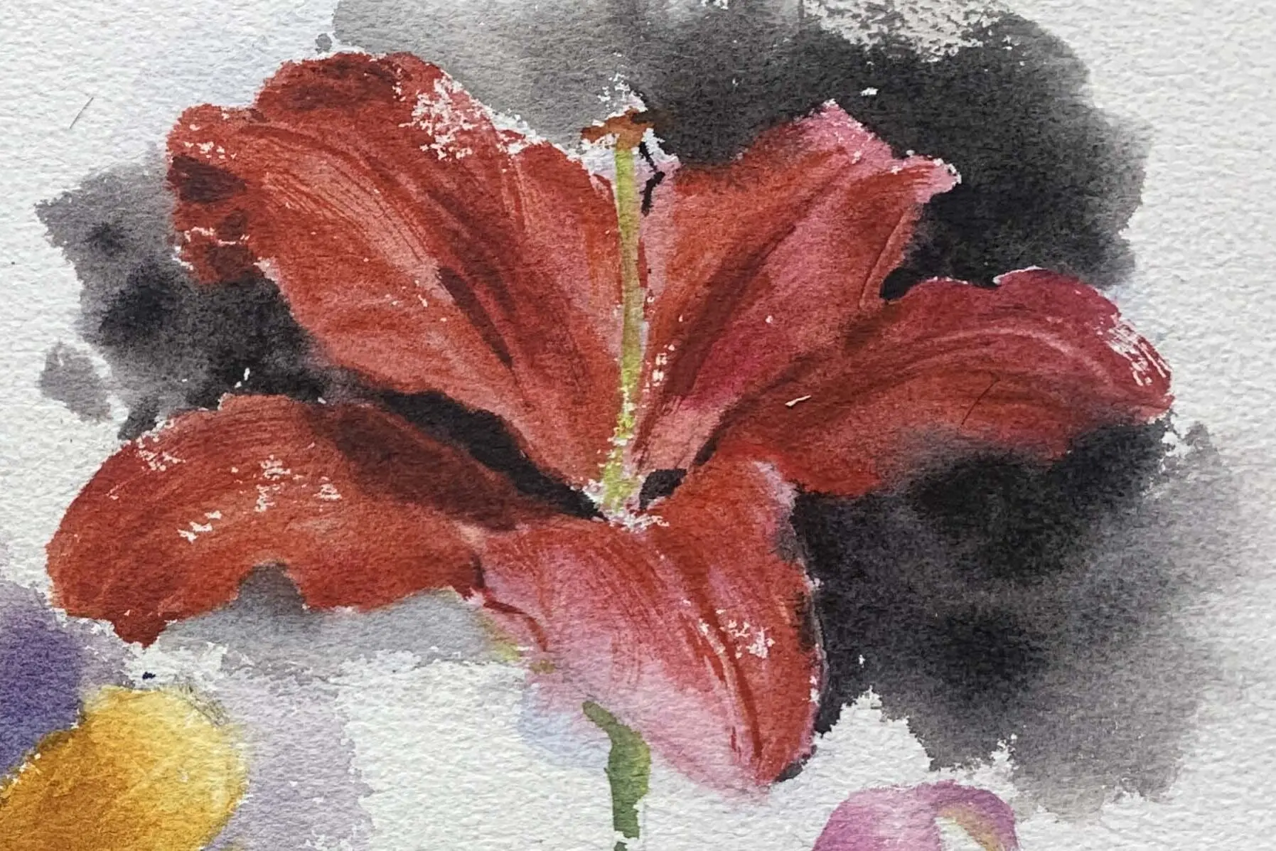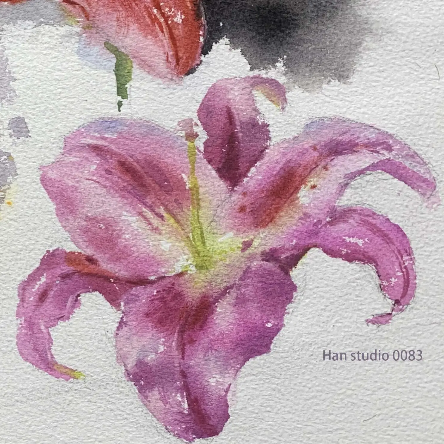 黃色百合:用暖黃 + 少量橘色加水稀釋加強光感,陰影則可用紫色或深藍色來對比。
