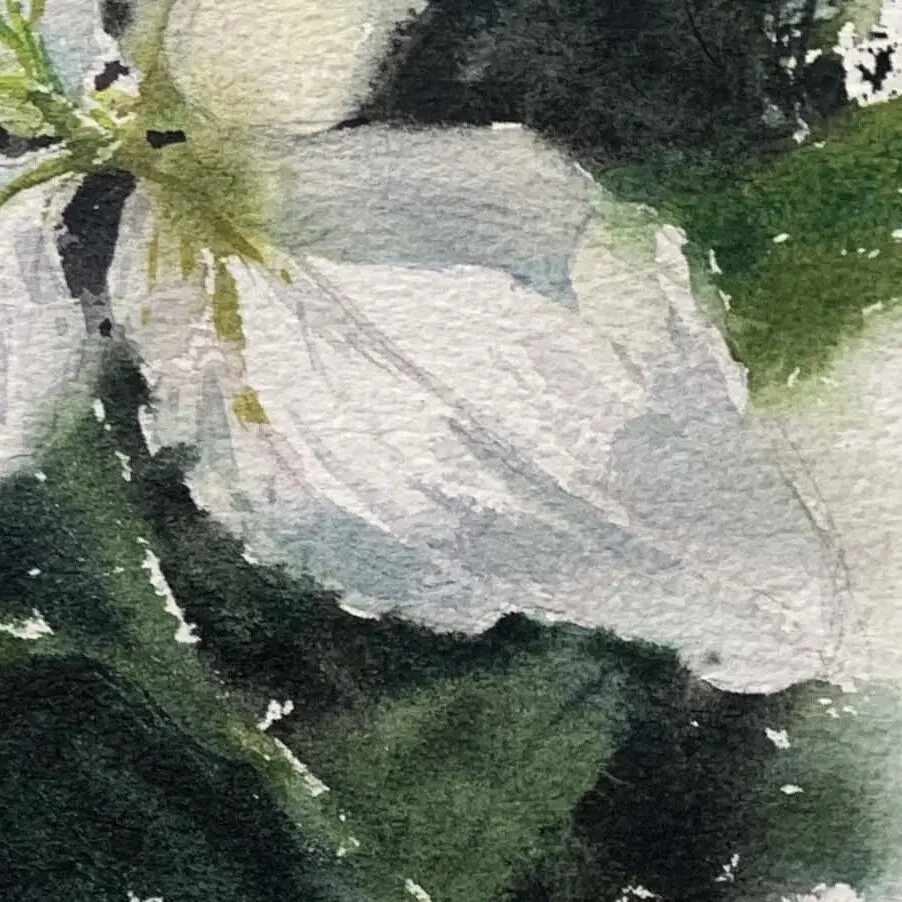 在花瓣半乾快要乾透狀態下,點濃色,或等乾透,薄疊表現花瓣紋理。